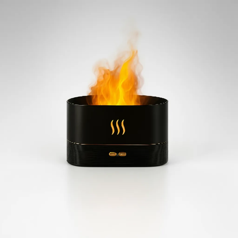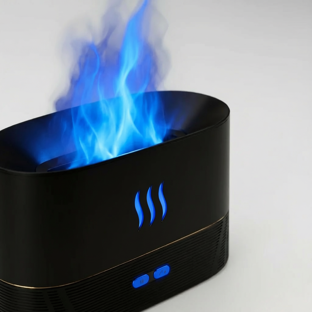 Un humidificador elegante que brilla como una llama suave, aportando bienestar y estilo al ambiente